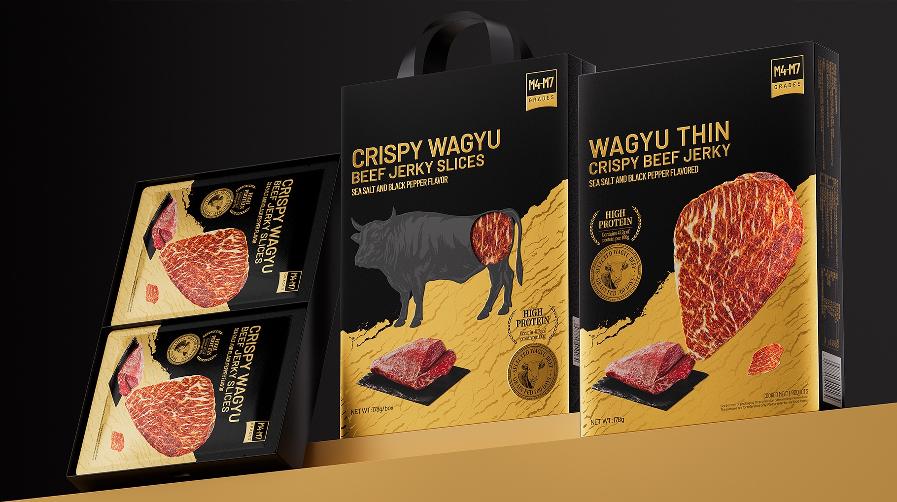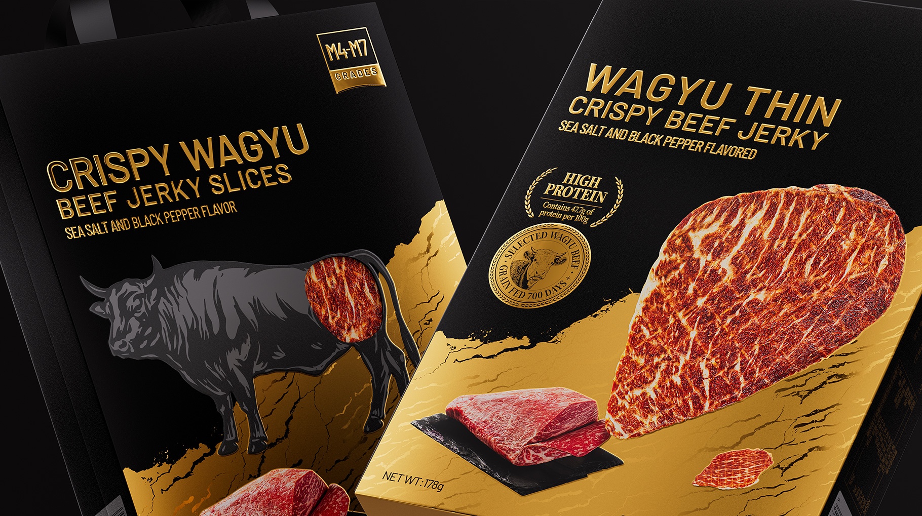?沃金和牛牛排脆產品包裝創意— 和牛雪花紋理的視覺美學?
