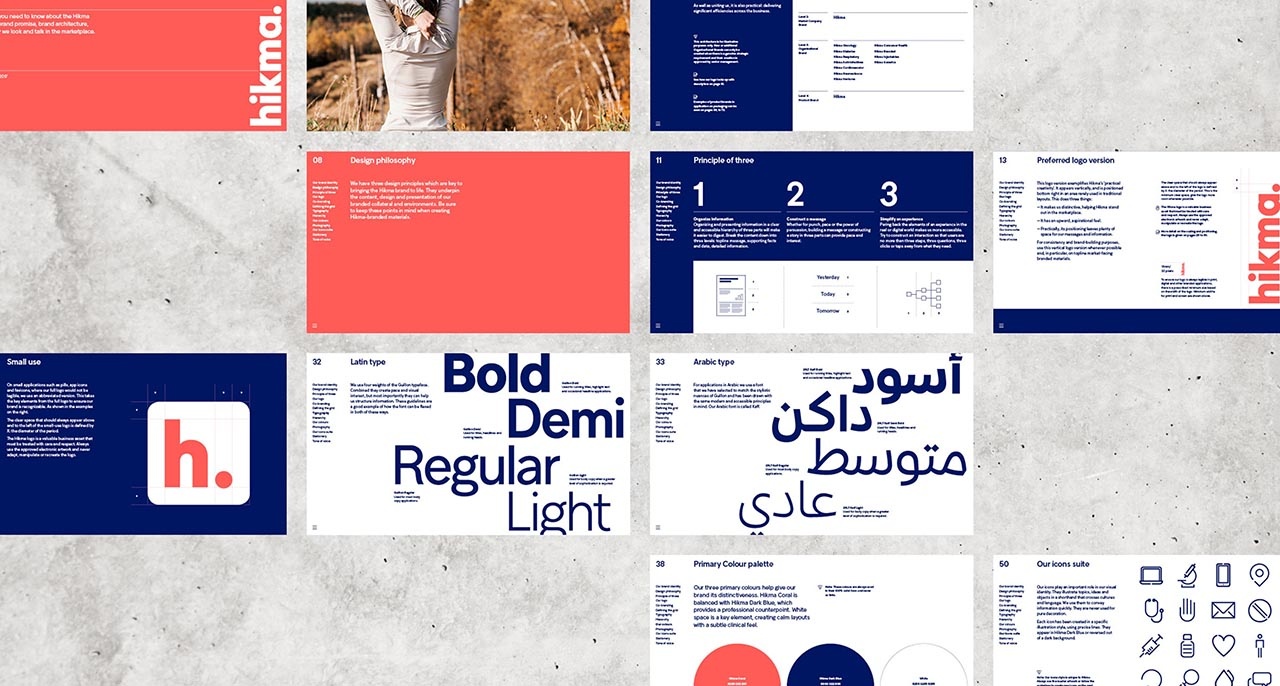 在梳理Hikma品牌架構(gòu)時(shí),我們發(fā)現(xiàn)緩解混亂的解決方案是將所有公司品牌合并為一個(gè)全球性主品牌,以便建立內(nèi)部統(tǒng)一性、一致性和驅(qū)動(dòng)力。我們開發(fā)了一個(gè)更加相關(guān)和數(shù)字化的視覺標(biāo)識(shí),包括刷新的調(diào)色板和可訪問的現(xiàn)代字體,讓Hikma品牌架構(gòu)在競爭激烈的市場中脫穎而出。