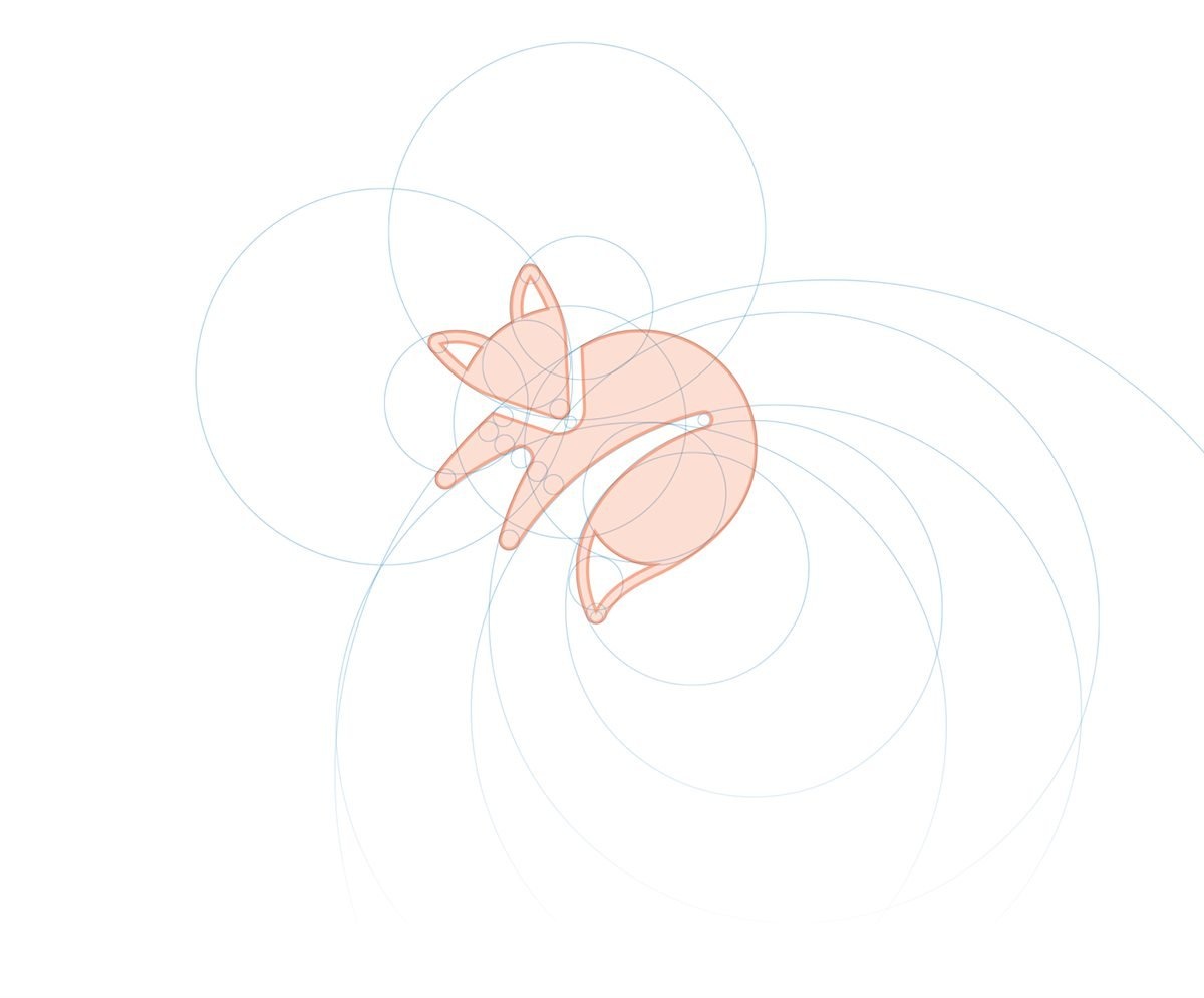 基于Biederman地球的理論,我們將復(fù)雜物體識別為一組簡單的幾何形狀。為了使競爭對手的標(biāo)志更加輕松,我們將細節(jié)水平降低到低多基底形狀。我們選擇一個三角形和圓形作為標(biāo)志構(gòu)造的基礎(chǔ)對象,以實現(xiàn)友好而富有表現(xiàn)力的形狀。這種組合與痘痘耳朵、鼻子、尾巴等有很好的聯(lián)系。