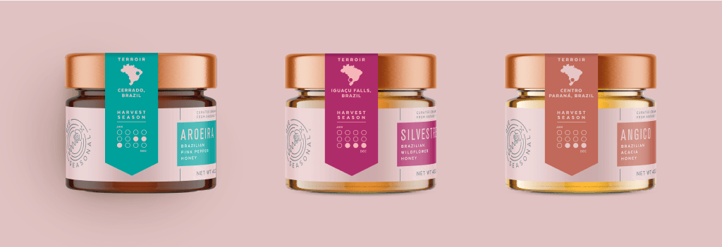 蜂蜜的風味和顏色是該位置所特有的,所有這些都在蜂蜜包裝設(shè)計上清楚地表達出來。此外,收獲季節(jié)對于蜂蜜的風味和特性至關(guān)重要,蜂蜜的不同特征也體現(xiàn)在蜂蜜的風味和特性上。